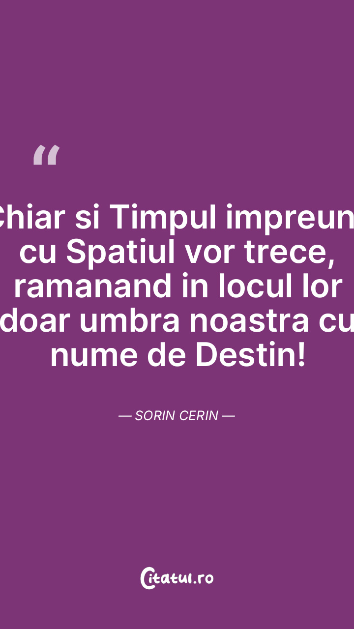 Chiar si Timpul impreuna cu Spatiul vor trece, ramanand in locul lor doar umbra noastra cu nume de Destin! Sorin Cerin