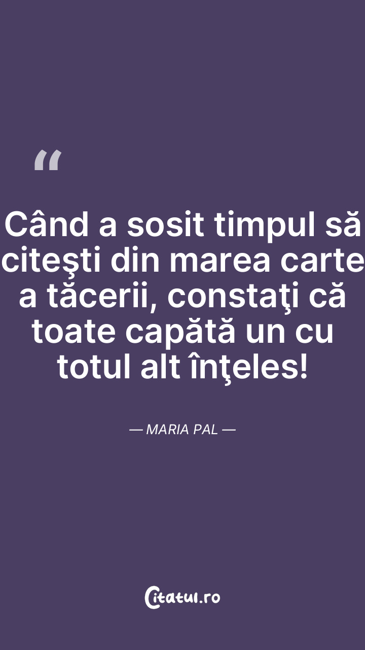 Când a sosit timpul să citeşti din marea carte a tăcerii, constaţi că toate capătă un cu totul alt înţeles! Maria Pal
