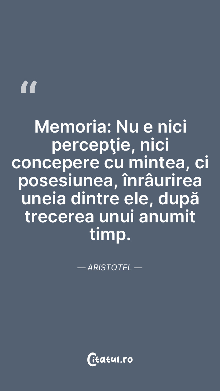 Memoria: Nu e nici percepţie, nici concepere cu mintea, ci posesiunea, înrâurirea uneia dintre ele, după trecerea unui anumit timp. Aristotel
