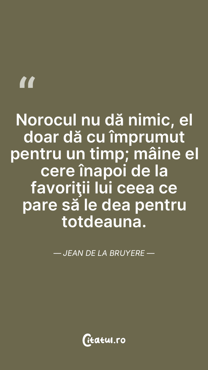 Norocul nu dă nimic, el doar dă cu împrumut pentru un timp; mâine el cere înapoi de la favoriţii lui ceea ce pare să le dea pentru totdeauna. Jean de La Bruyere