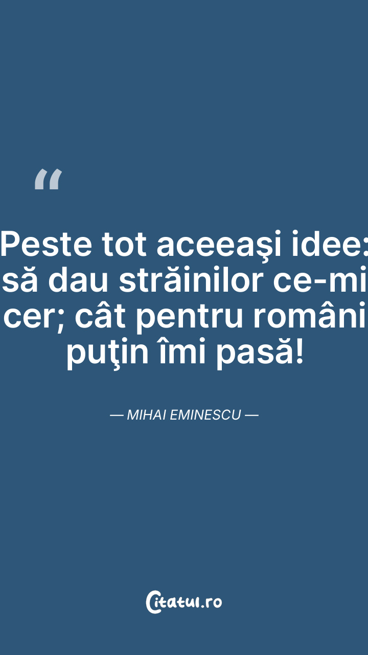 Peste tot aceeaşi idee: să dau străinilor ce-mi cer; cât pentru români puţin îmi pasă! Mihai Eminescu