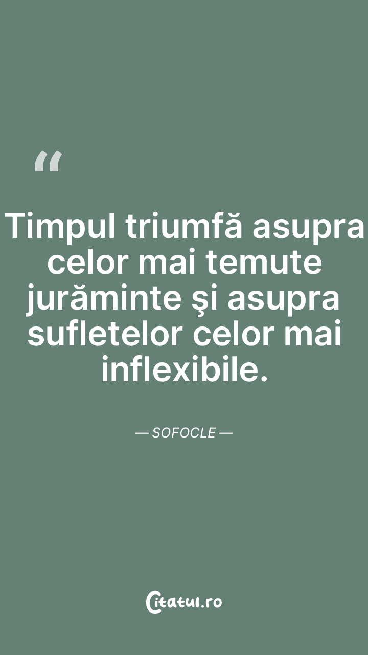 Timpul triumfă asupra celor mai temute jurăminte şi asupra sufletelor celor mai inflexibile. Sofocle