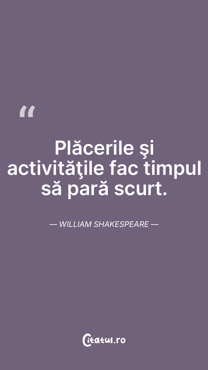 Plăcerile şi activităţile fac timpul să pară scurt. William Shakespeare
