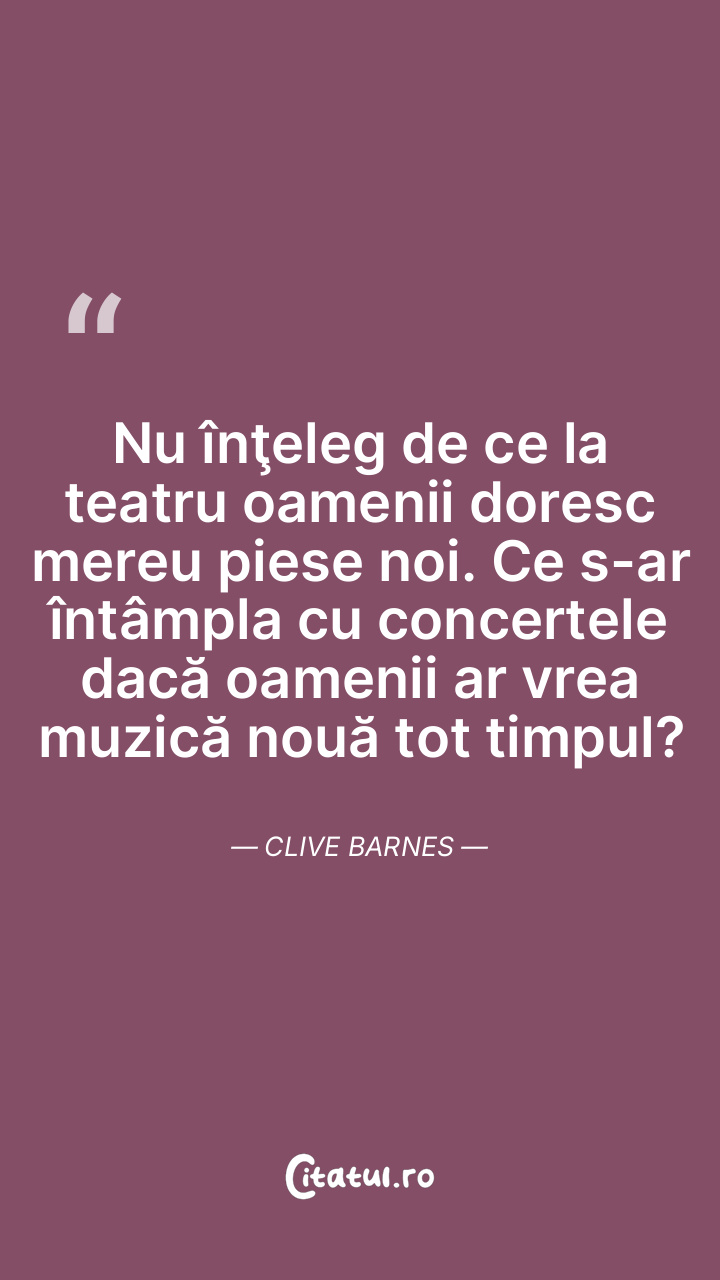Nu înţeleg de ce la teatru oamenii doresc mereu piese noi. Ce s-ar întâmpla cu concertele dacă oamenii ar vrea muzică nouă tot timpul? Clive Barnes
