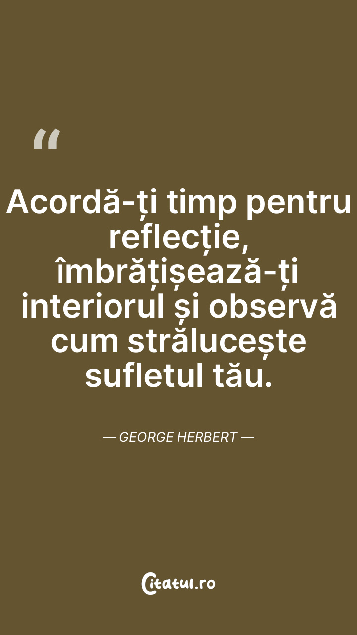 Acordă-ți timp pentru reflecție, îmbrățișează-ți interiorul și observă cum strălucește sufletul tău. George Herbert