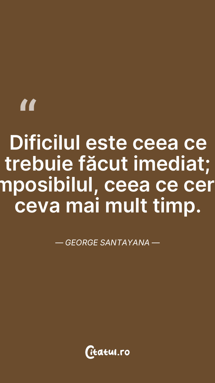 Dificilul este ceea ce trebuie făcut imediat; imposibilul, ceea ce cere ceva mai mult timp. George Santayana