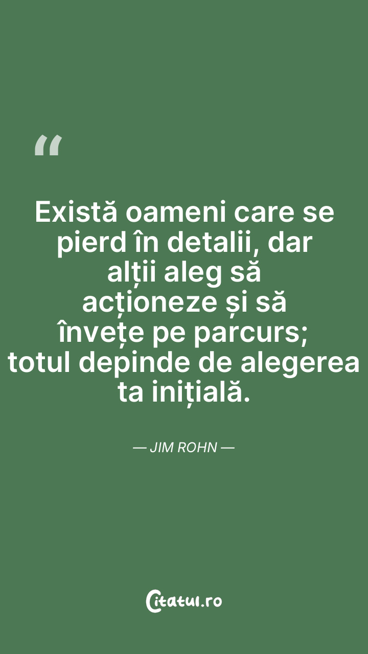 Există oameni care se pierd în detalii, dar alții aleg să acționeze și să învețe pe parcurs; totul depinde de alegerea ta inițială. Jim Rohn