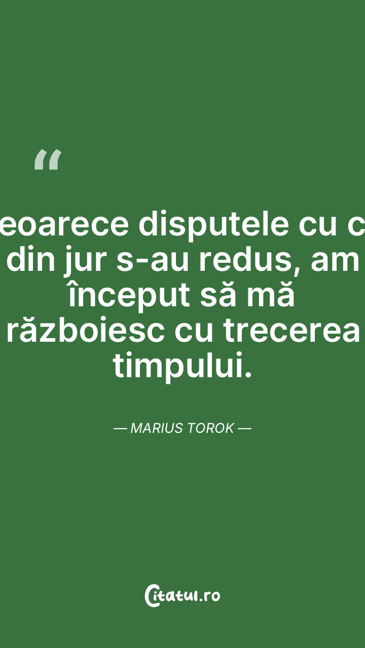 Deoarece disputele cu cei din jur s-au redus, am început să mă războiesc cu trecerea timpului. Marius Torok