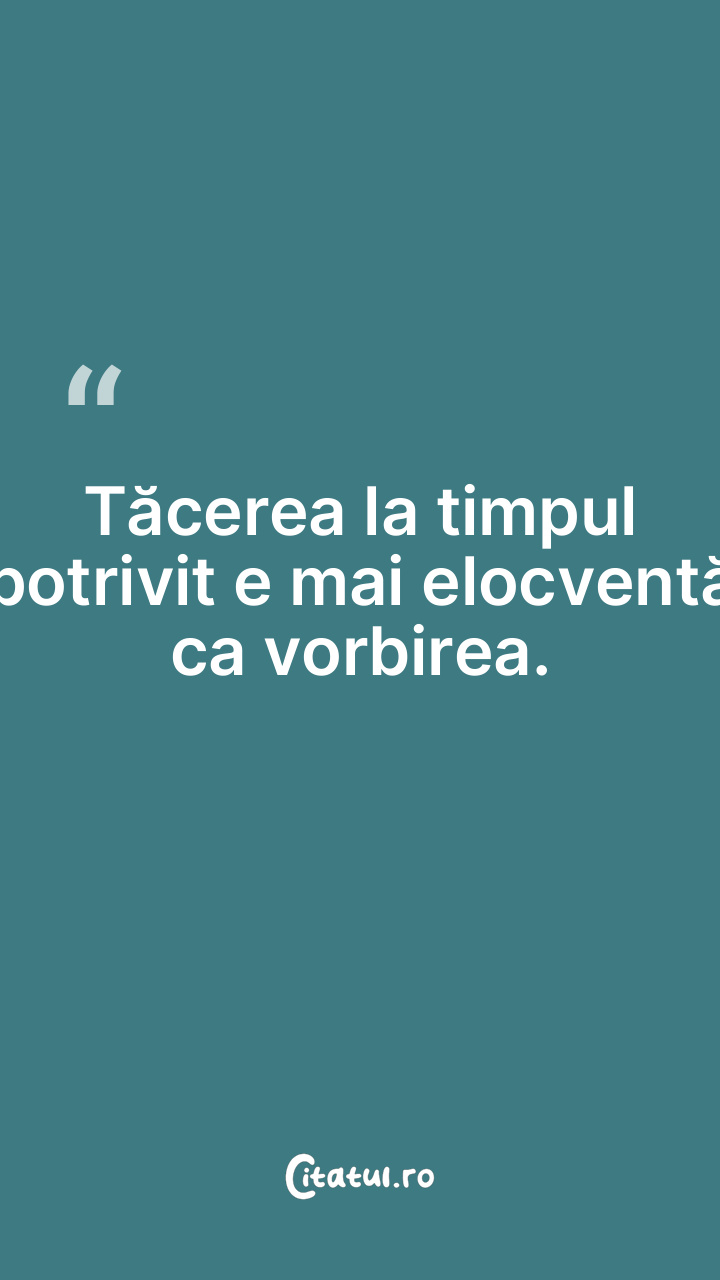 Tăcerea la timpul potrivit e mai elocventă ca vorbirea.