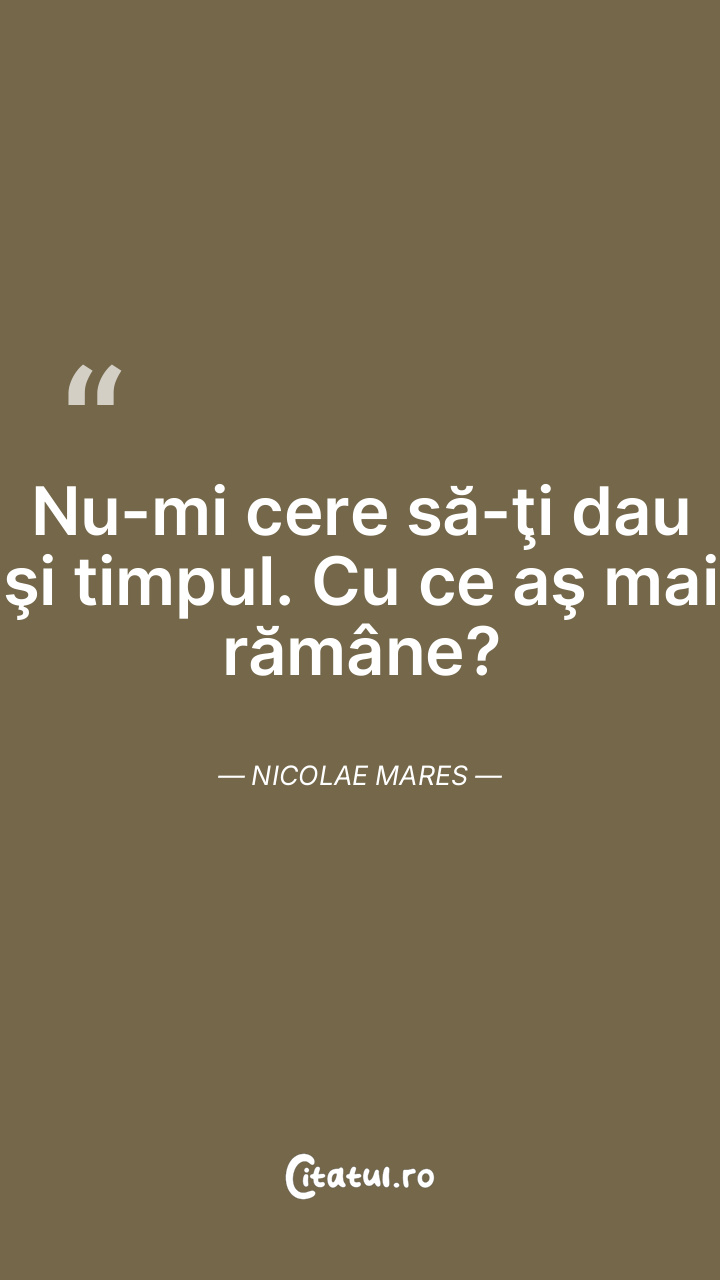 Nu-mi cere să-ţi dau şi timpul. Cu ce aş mai rămâne? Nicolae Mares