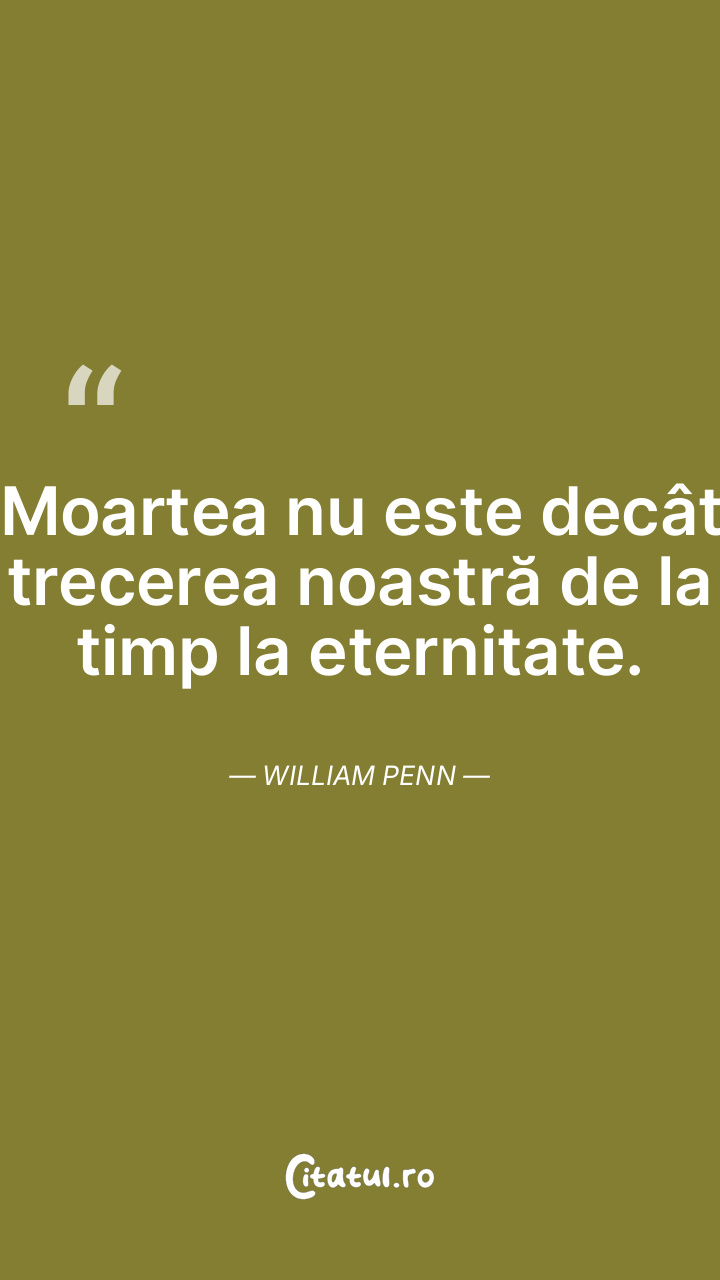 Moartea nu este decât trecerea noastră de la timp la eternitate. William Penn