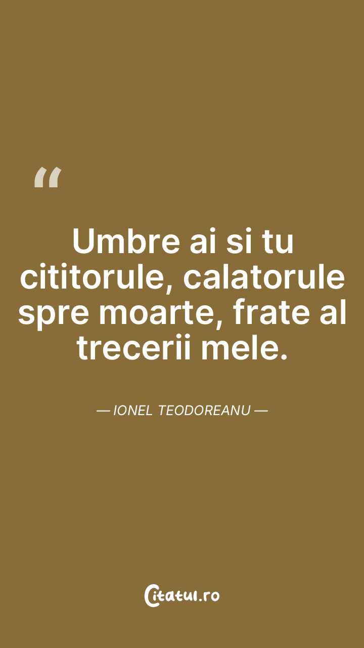 Umbre ai si tu cititorule, calatorule spre moarte, frate al trecerii mele. Ionel Teodoreanu