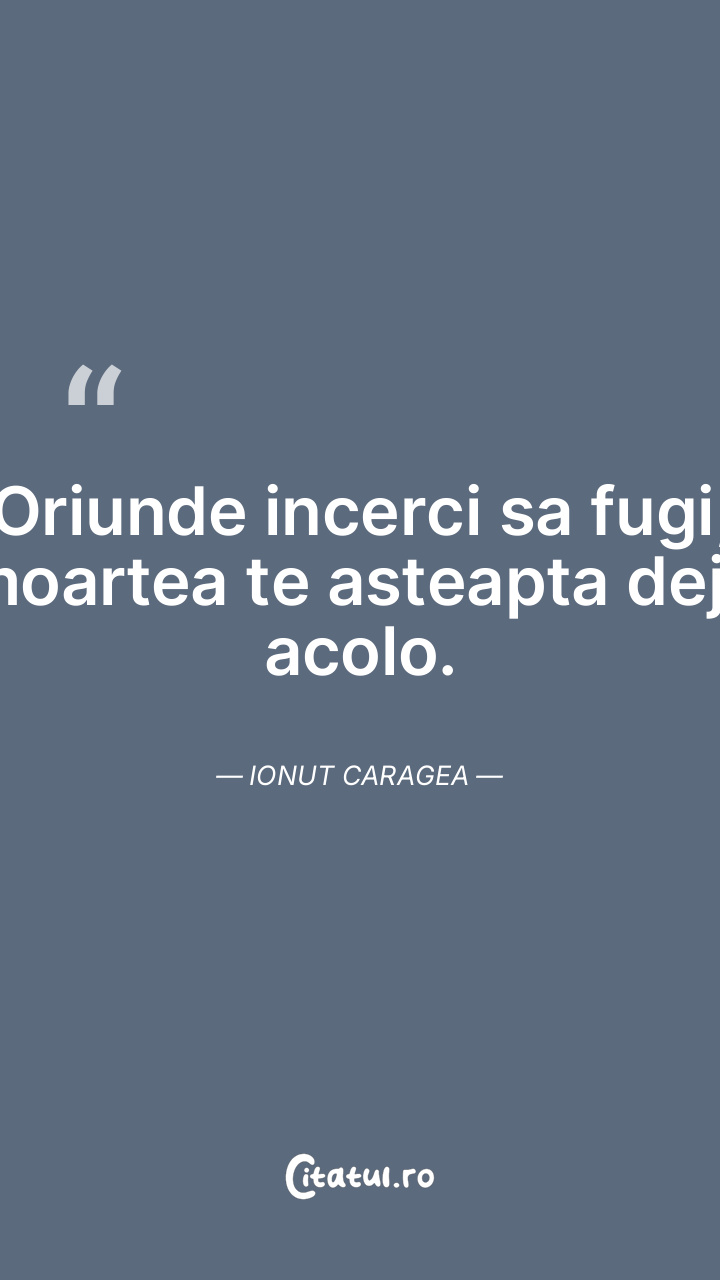 Oriunde incerci sa fugi, moartea te asteapta deja acolo. Ionut Caragea