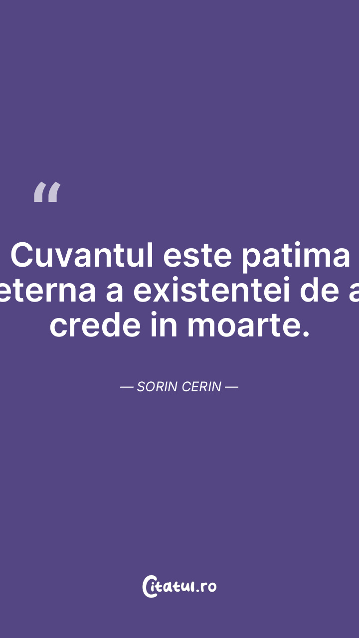 Cuvantul este patima eterna a existentei de a crede in moarte. Sorin Cerin