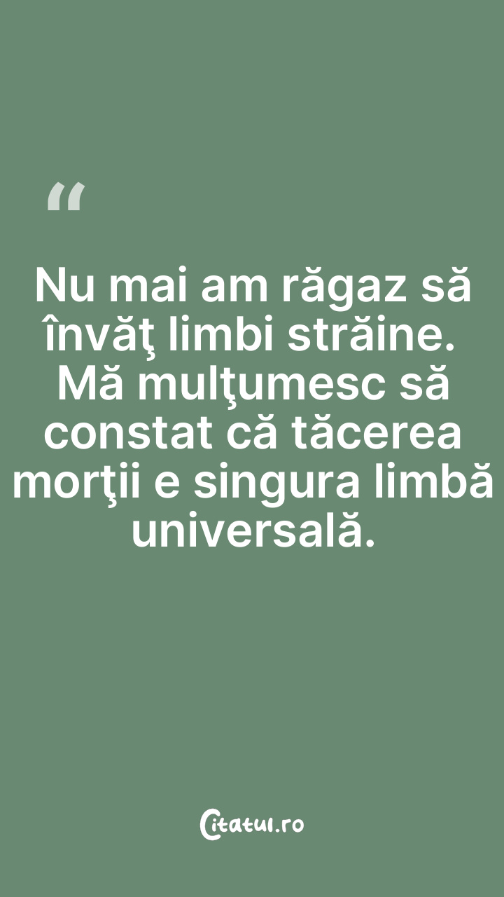 Nu mai am răgaz să învăţ limbi străine. Mă mulţumesc să constat că tăcerea morţii e singura limbă universală.