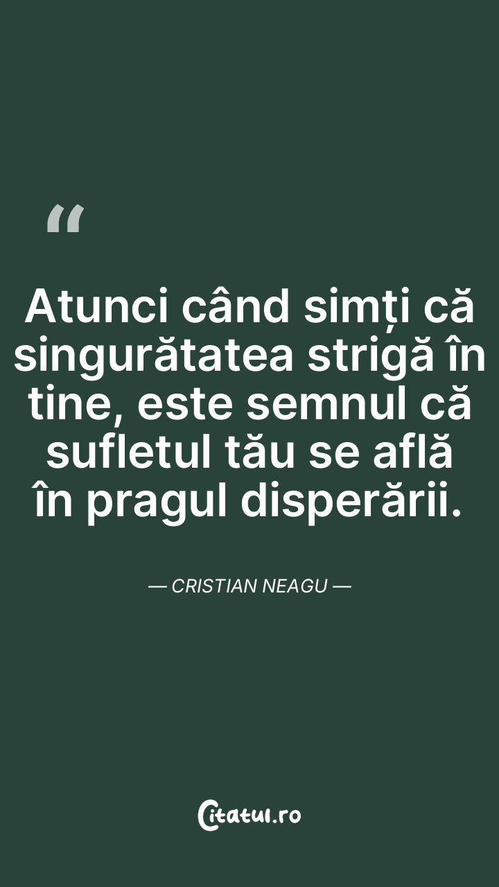 Atunci când simți că singurătatea strigă în tine, este semnul că sufletul tău se află în pragul disperării. Cristian Neagu