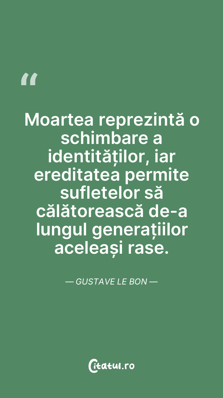Moartea reprezintă o schimbare a identităților, iar ereditatea permite sufletelor să călătorească de-a lungul generațiilor aceleași rase. Gustave Le Bon