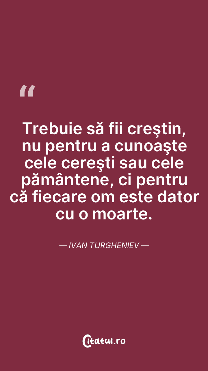 Trebuie să fii creştin, nu pentru a cunoaşte cele cereşti sau cele pământene, ci pentru că fiecare om este dator cu o moarte. Ivan Turgheniev