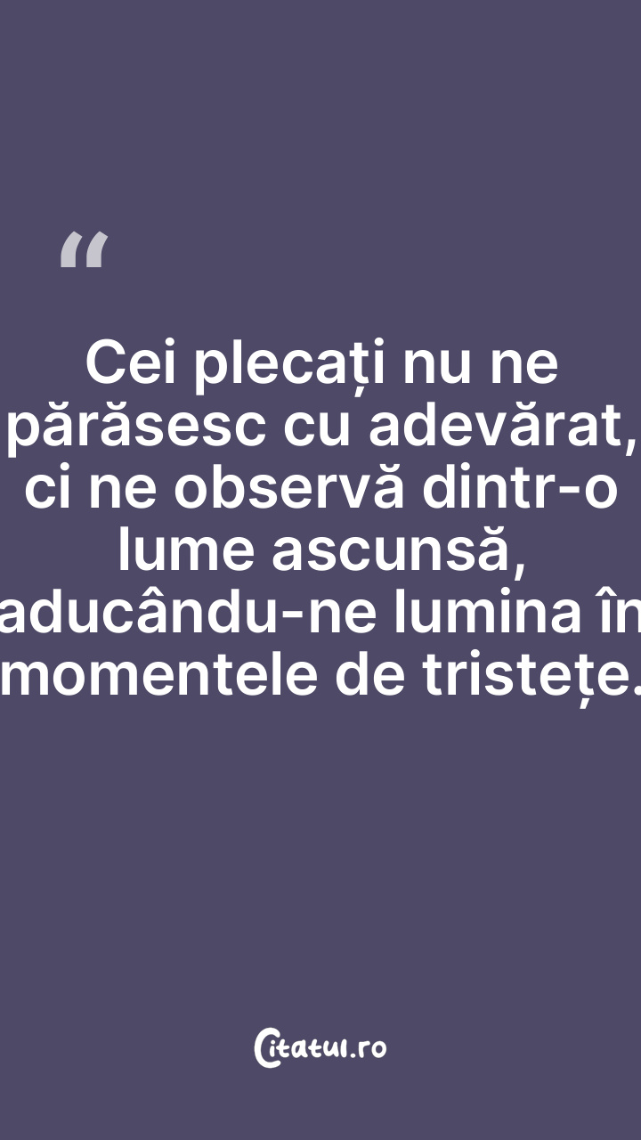 Cei plecați nu ne părăsesc cu adevărat, ci ne observă dintr-o lume ascunsă, aducându-ne lumina în momentele de tristețe.