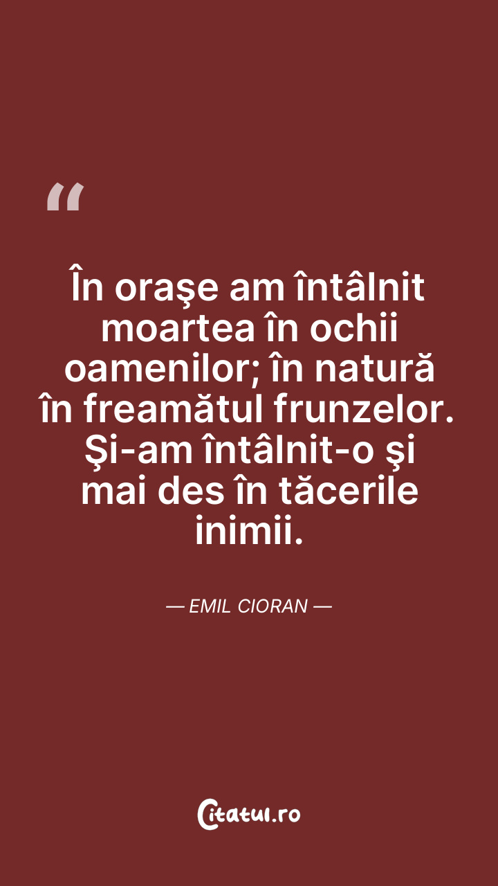 În oraşe am întâlnit moartea în ochii oamenilor; în natură în freamătul frunzelor. Şi-am întâlnit-o şi mai des în tăcerile inimii. Emil Cioran
