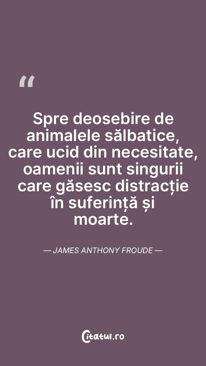 Spre deosebire de animalele sălbatice, care ucid din necesitate, oamenii sunt singurii care găsesc distracție în suferință și moarte. James Anthony Froude