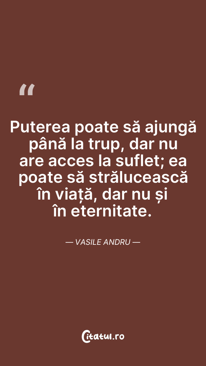 Puterea poate să ajungă până la trup, dar nu are acces la suflet; ea poate să strălucească în viață, dar nu și în eternitate. Vasile Andru