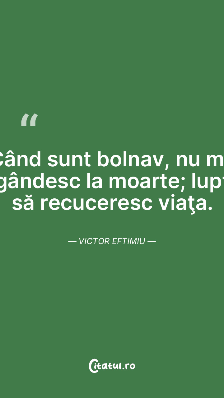 Când sunt bolnav, nu mă gândesc la moarte; lupt să recuceresc viaţa. Victor Eftimiu