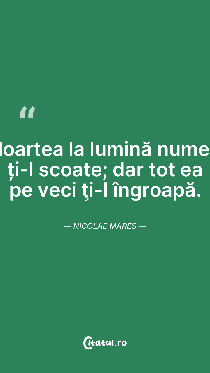 Moartea la lumină numele ți-l scoate; dar tot ea pe veci ţi-l îngroapă. Nicolae Mares