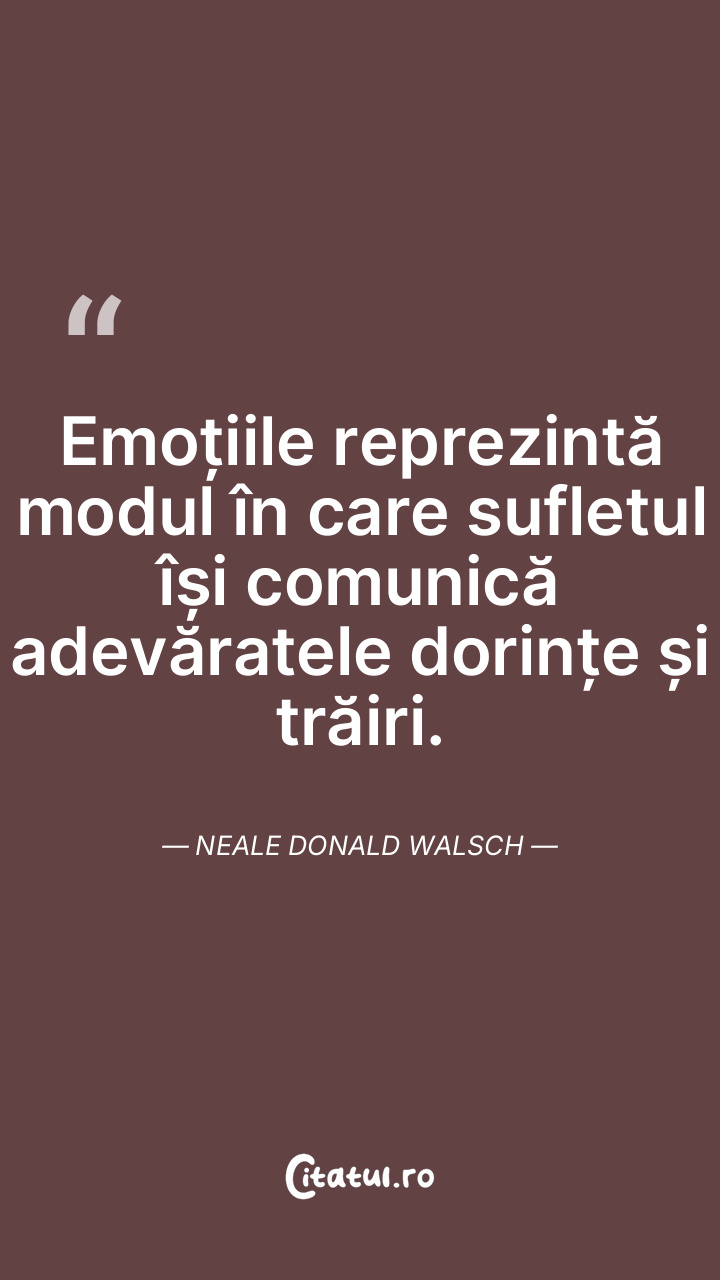Emoțiile reprezintă modul în care sufletul își comunică adevăratele dorințe și trăiri. Neale Donald Walsch