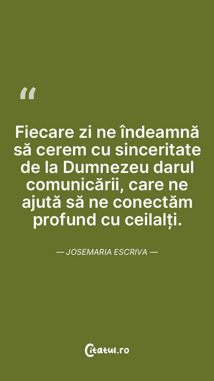 Fiecare zi ne îndeamnă să cerem cu sinceritate de la Dumnezeu darul comunicării, care ne ajută să ne conectăm profund cu ceilalți. Josemaria Escriva