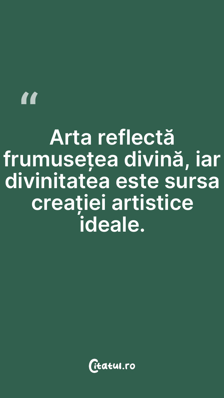 Arta reflectă frumusețea divină, iar divinitatea este sursa creației artistice ideale.