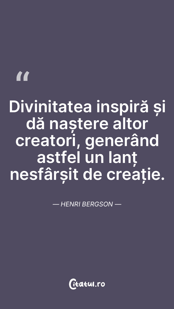 Divinitatea inspiră și dă naștere altor creatori, generând astfel un lanț nesfârșit de creație. Henri Bergson