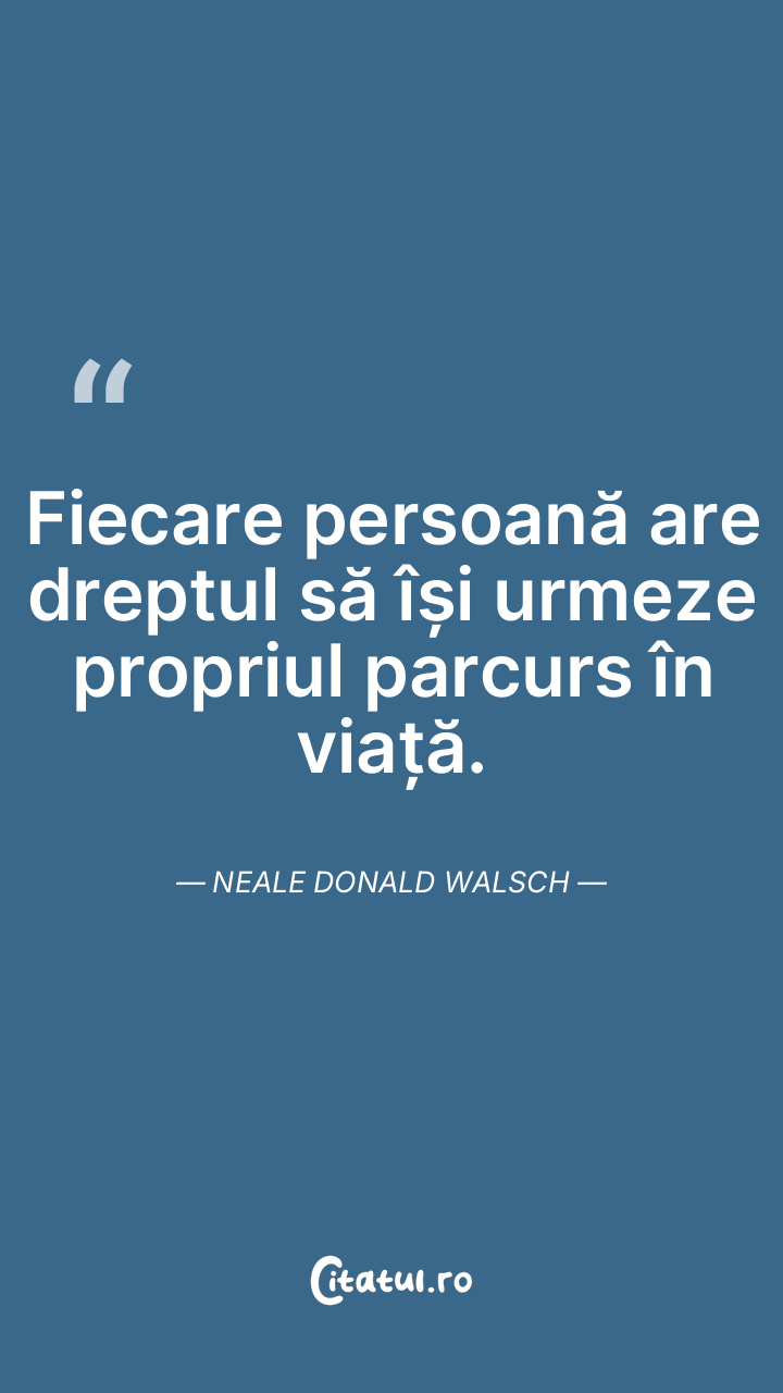 Fiecare persoană are dreptul să își urmeze propriul parcurs în viață. Neale Donald Walsch