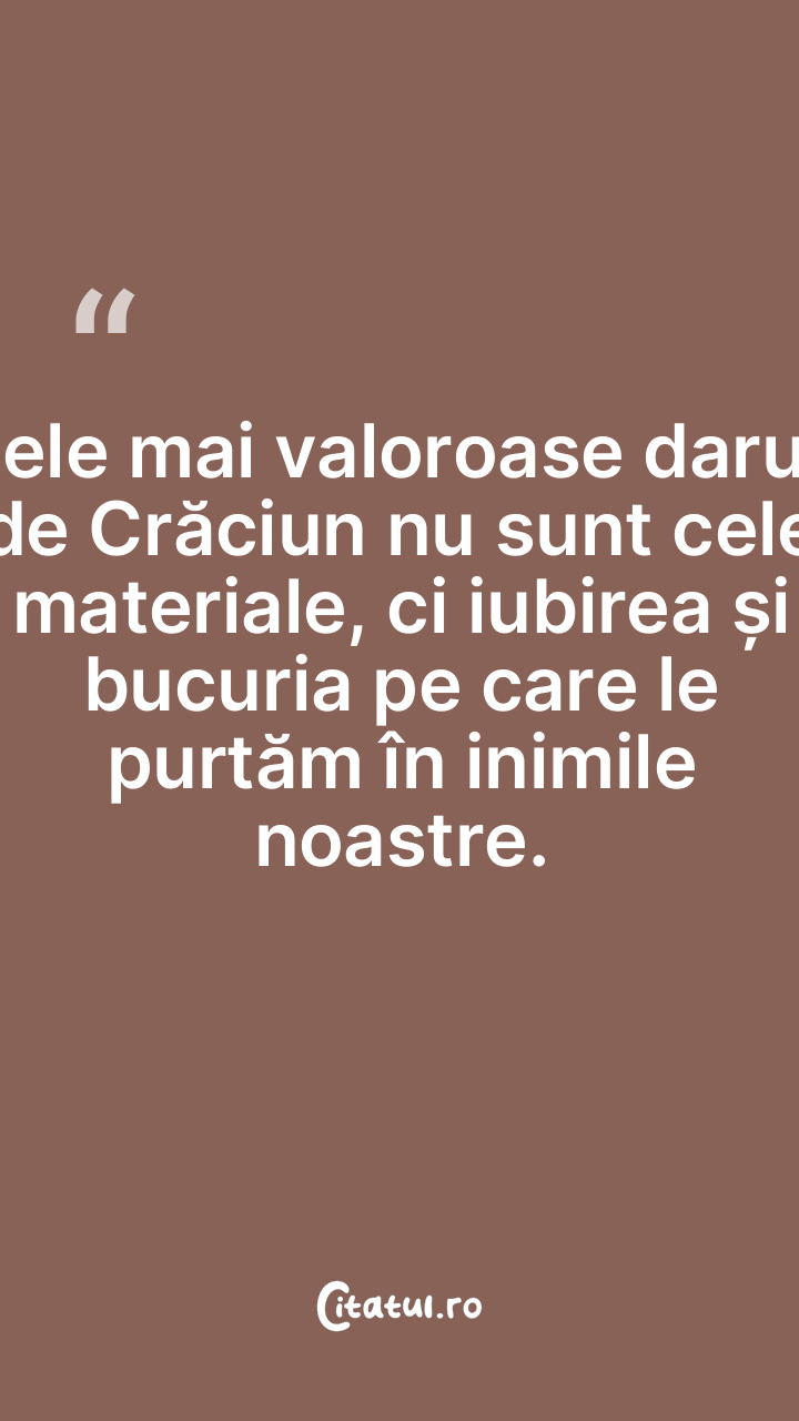 Cele mai valoroase daruri de Crăciun nu sunt cele materiale, ci iubirea și bucuria pe care le purtăm în inimile noastre.