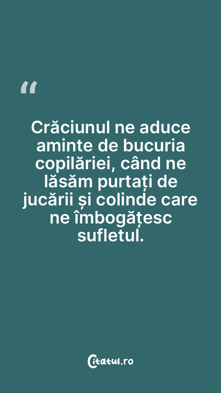 Crăciunul ne aduce aminte de bucuria copilăriei, c...