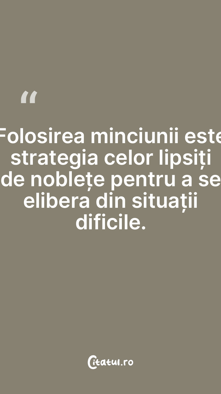 Folosirea minciunii este strategia celor lipsiți de noblețe pentru a se elibera din situații dificile.