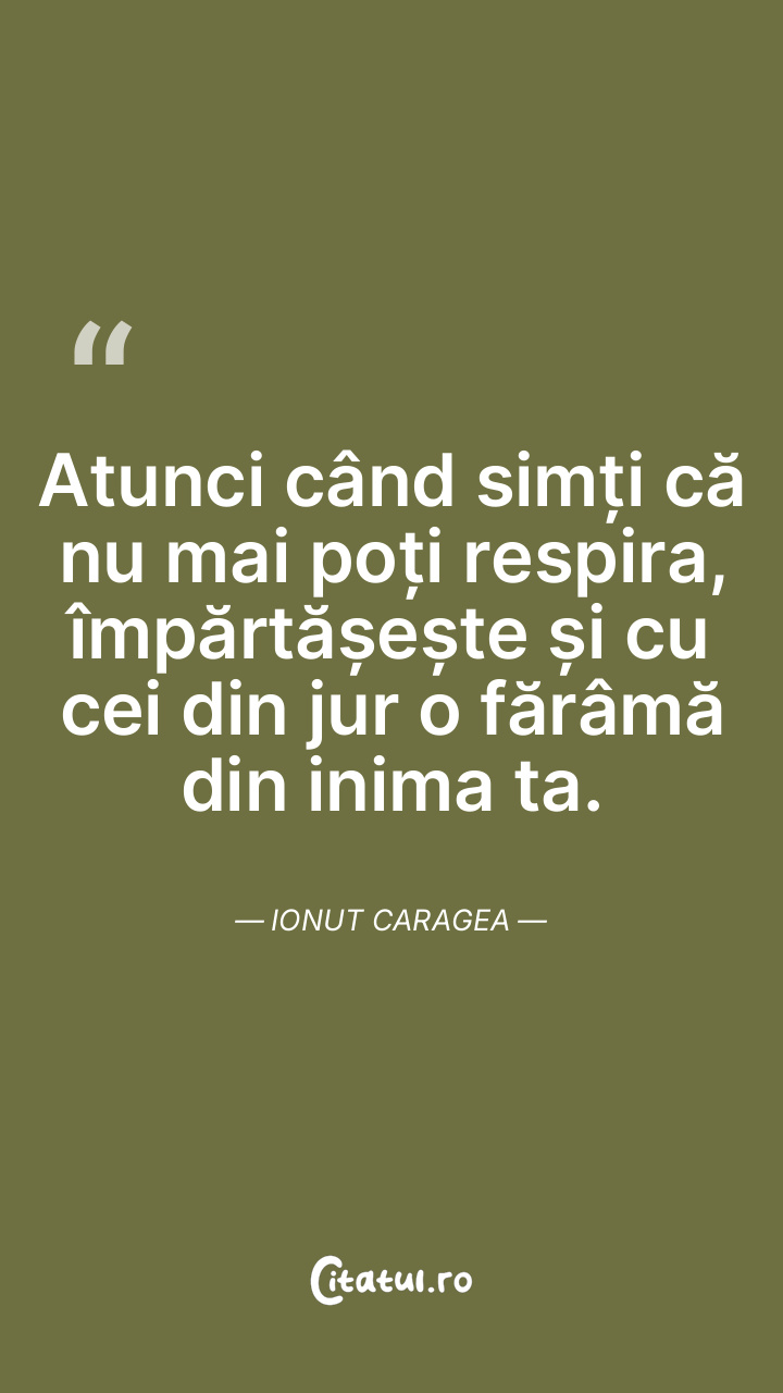 Atunci când simți că nu mai poți respira, împărtășește și cu cei din jur o fărâmă din inima ta. Ionut Caragea