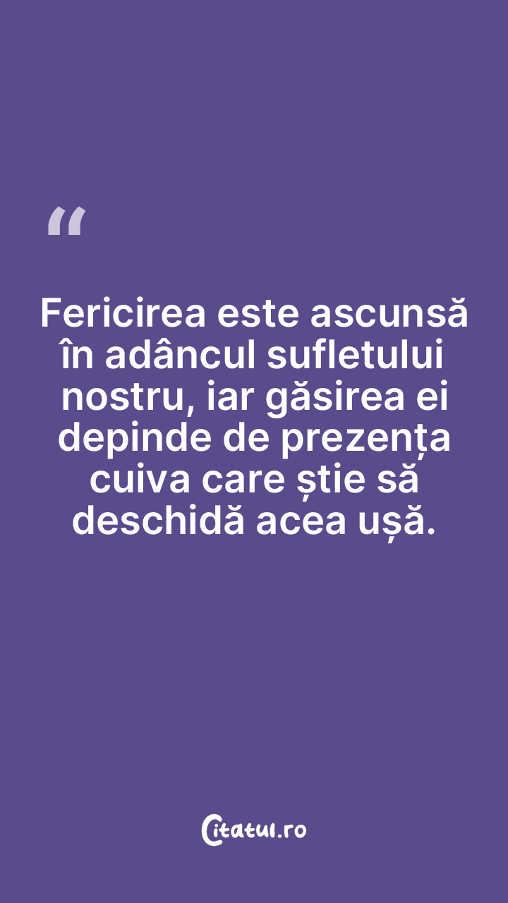 Fericirea este ascunsă în adâncul sufletului nostru, iar găsirea ei depinde de prezența cuiva care știe să deschidă acea ușă.