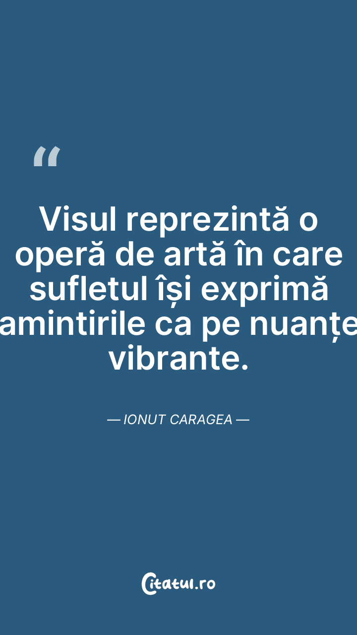 Visul reprezintă o operă de artă în care sufletul își exprimă amintirile ca pe nuanțe vibrante. Ionut Caragea
