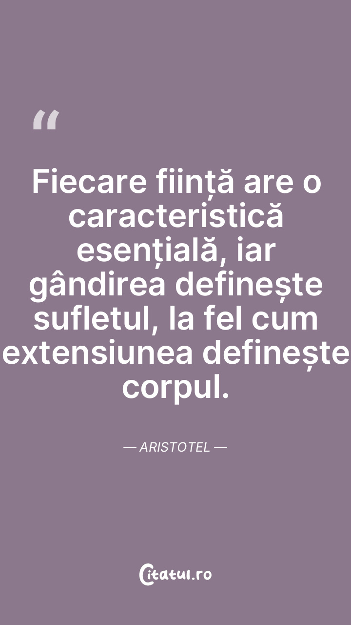 Fiecare ființă are o caracteristică esențială, iar gândirea definește sufletul, la fel cum extensiunea definește corpul. Aristotel