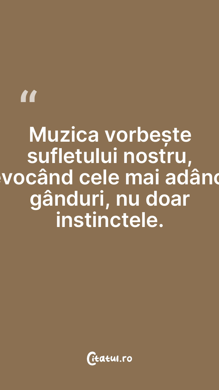 Muzica vorbește sufletului nostru, evocând cele mai adânci gânduri, nu doar instinctele.