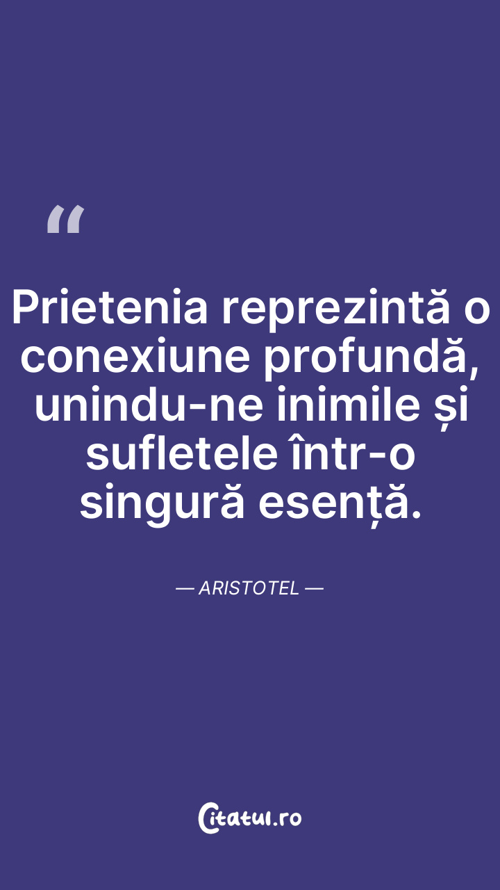 Prietenia reprezintă o conexiune profundă, unindu-ne inimile și sufletele într-o singură esență. Aristotel