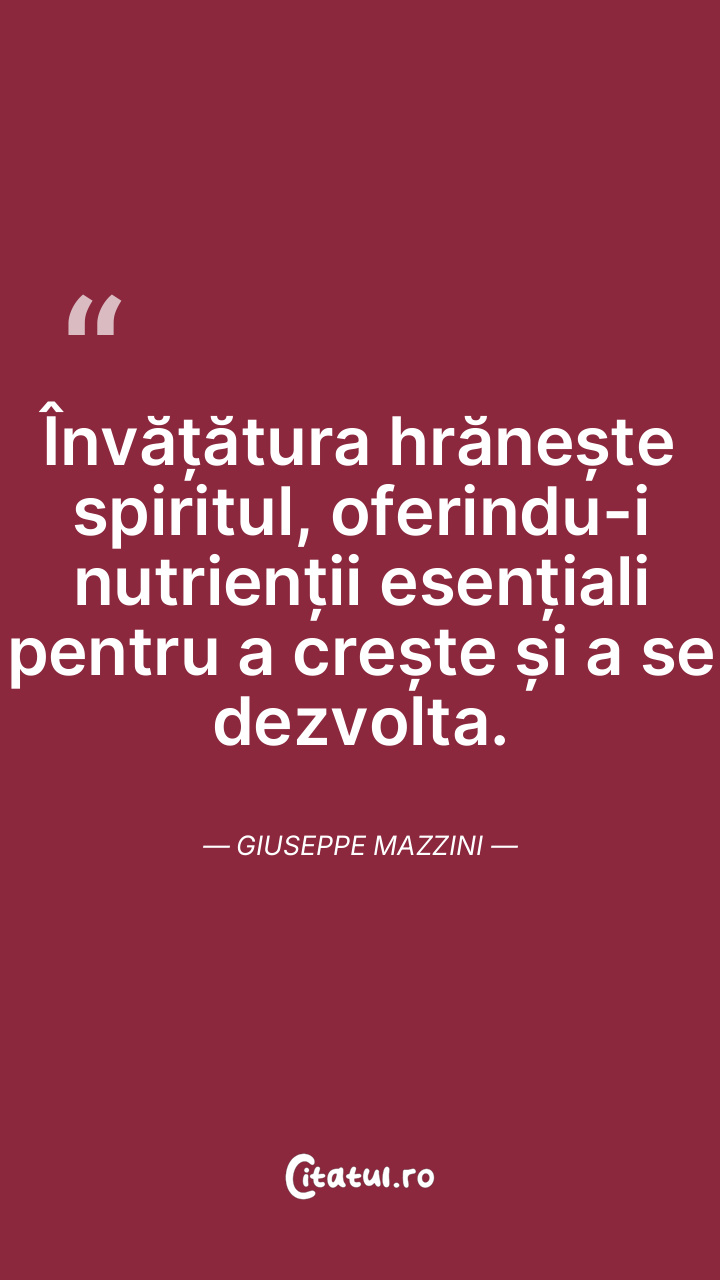 Învățătura hrănește spiritul, oferindu-i nutrienții esențiali pentru a crește și a se dezvolta. Giuseppe Mazzini