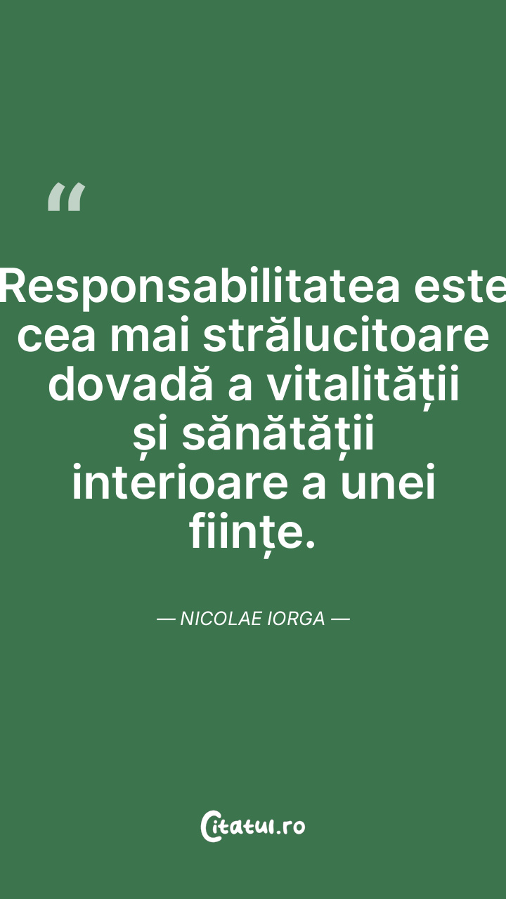 Responsabilitatea este cea mai strălucitoare dovadă a vitalității și sănătății interioare a unei ființe. Nicolae Iorga