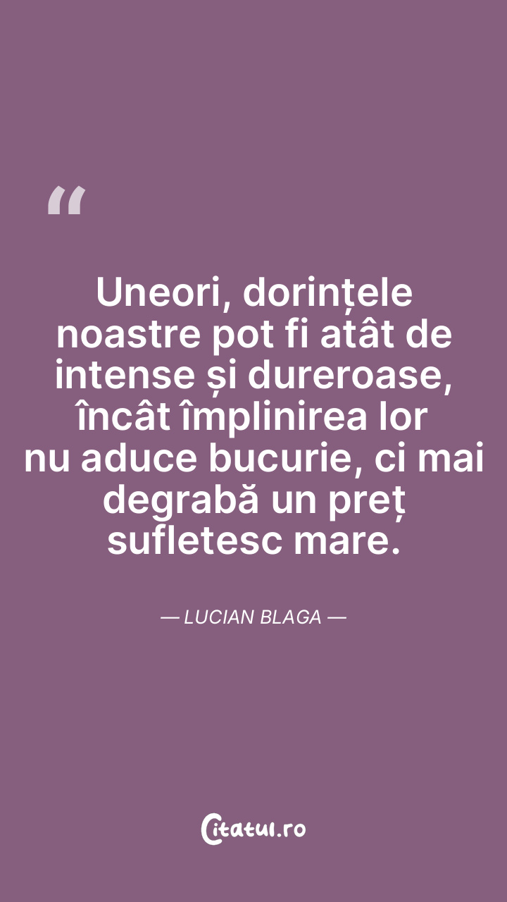 Uneori, dorințele noastre pot fi atât de intense și dureroase, încât împlinirea lor nu aduce bucurie, ci mai degrabă un preț sufletesc mare. Lucian Blaga