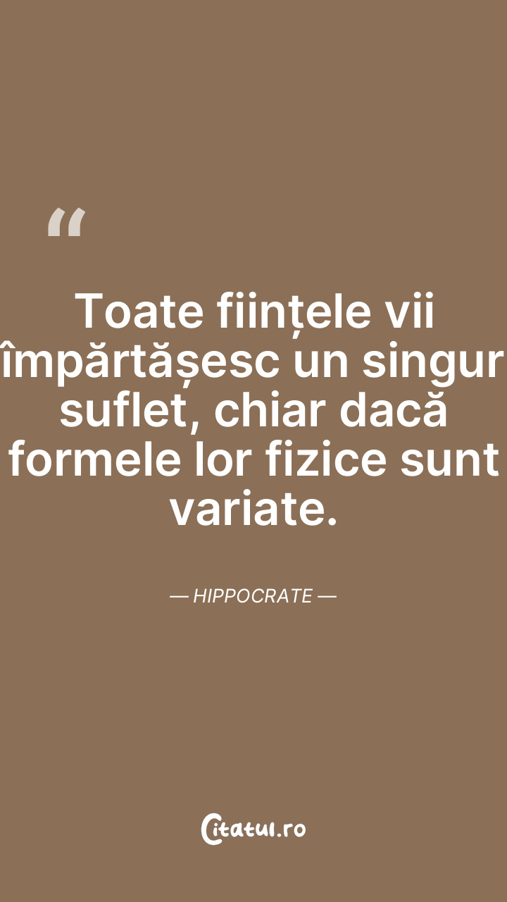 Toate ființele vii împărtășesc un singur suflet, chiar dacă formele lor fizice sunt variate. Hippocrate