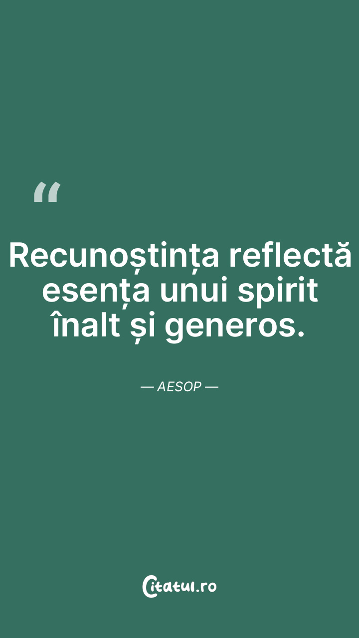 Recunoștința reflectă esența unui spirit înalt și generos. Aesop