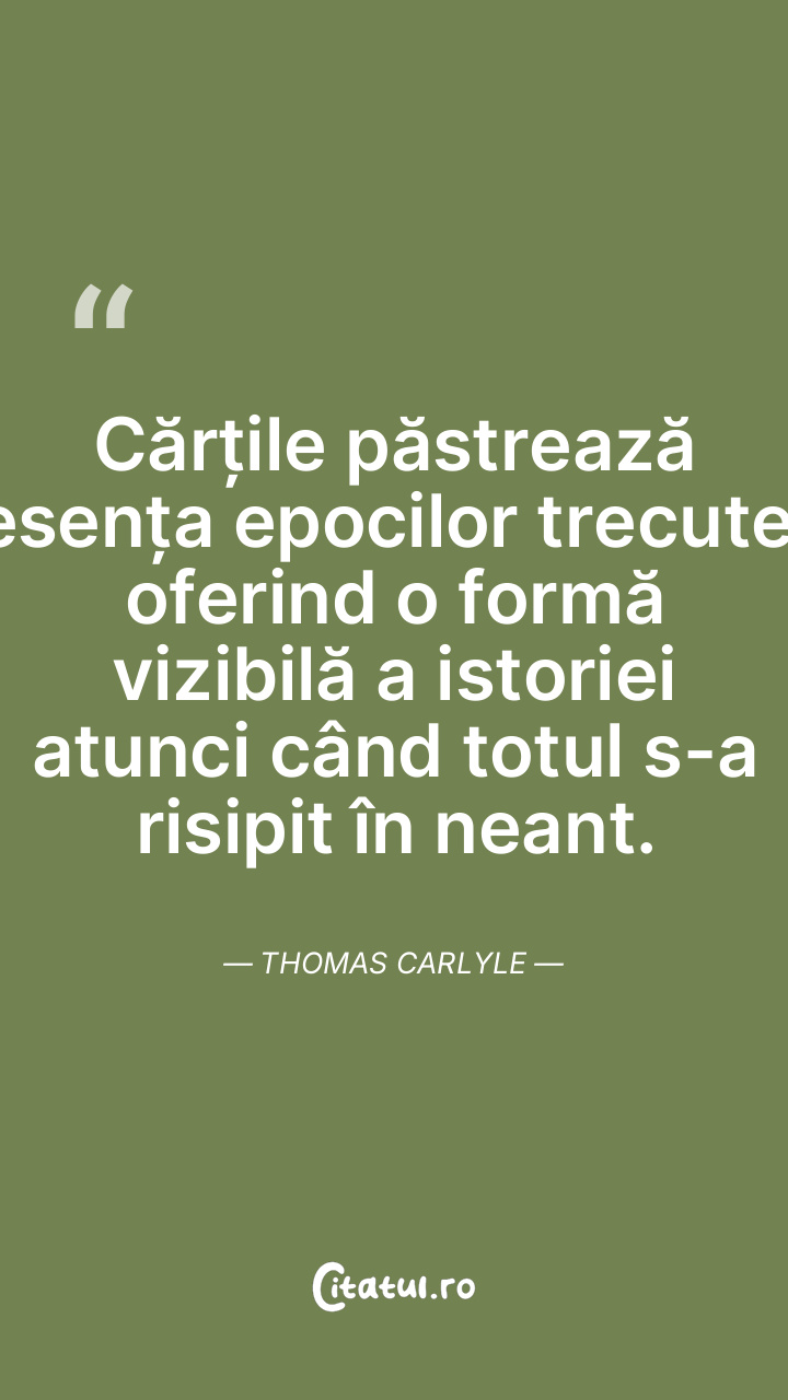 Cărțile păstrează esența epocilor trecute, oferind o formă vizibilă a istoriei atunci când totul s-a risipit în neant. Thomas Carlyle