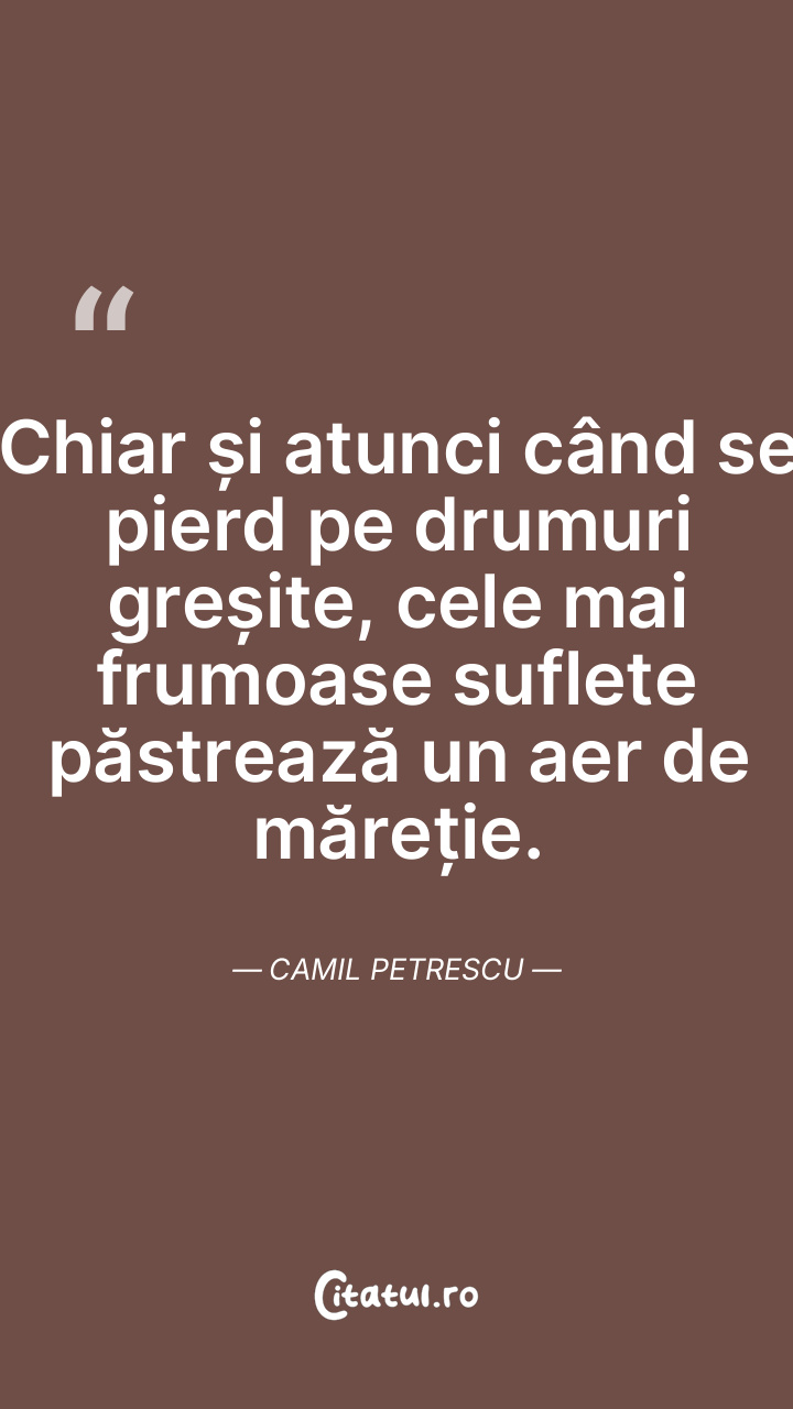 Chiar și atunci când se pierd pe drumuri greșite, cele mai frumoase suflete păstrează un aer de măreție. Camil Petrescu