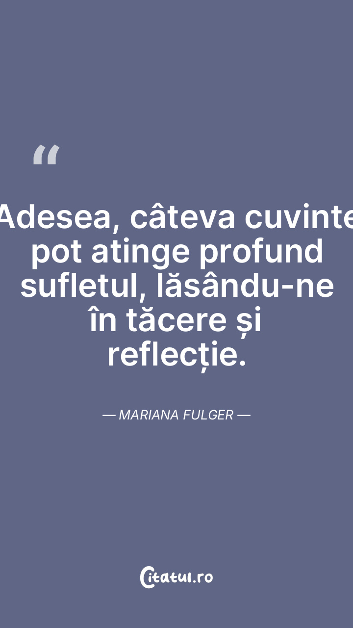 Adesea, câteva cuvinte pot atinge profund sufletul, lăsându-ne în tăcere și reflecție. Mariana Fulger